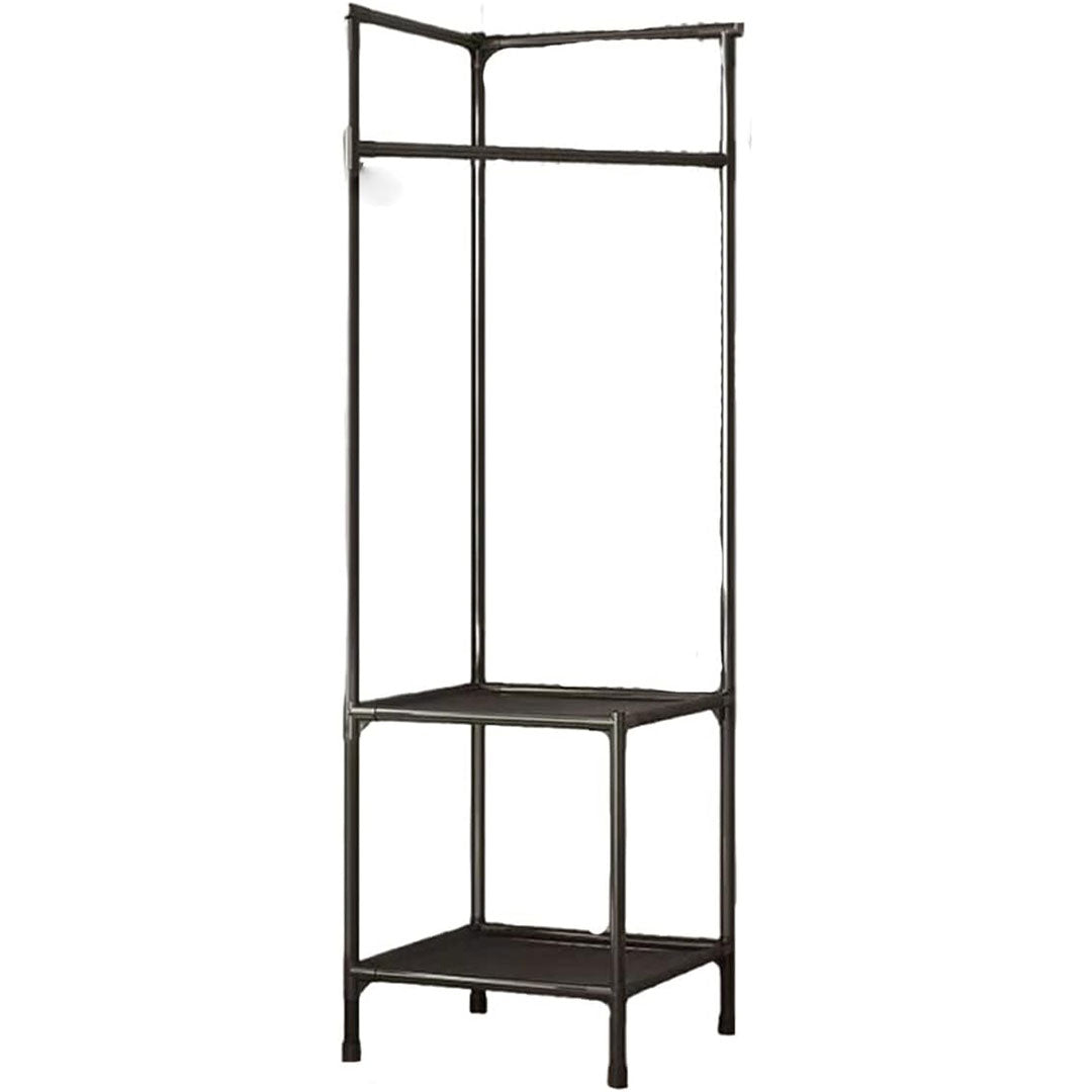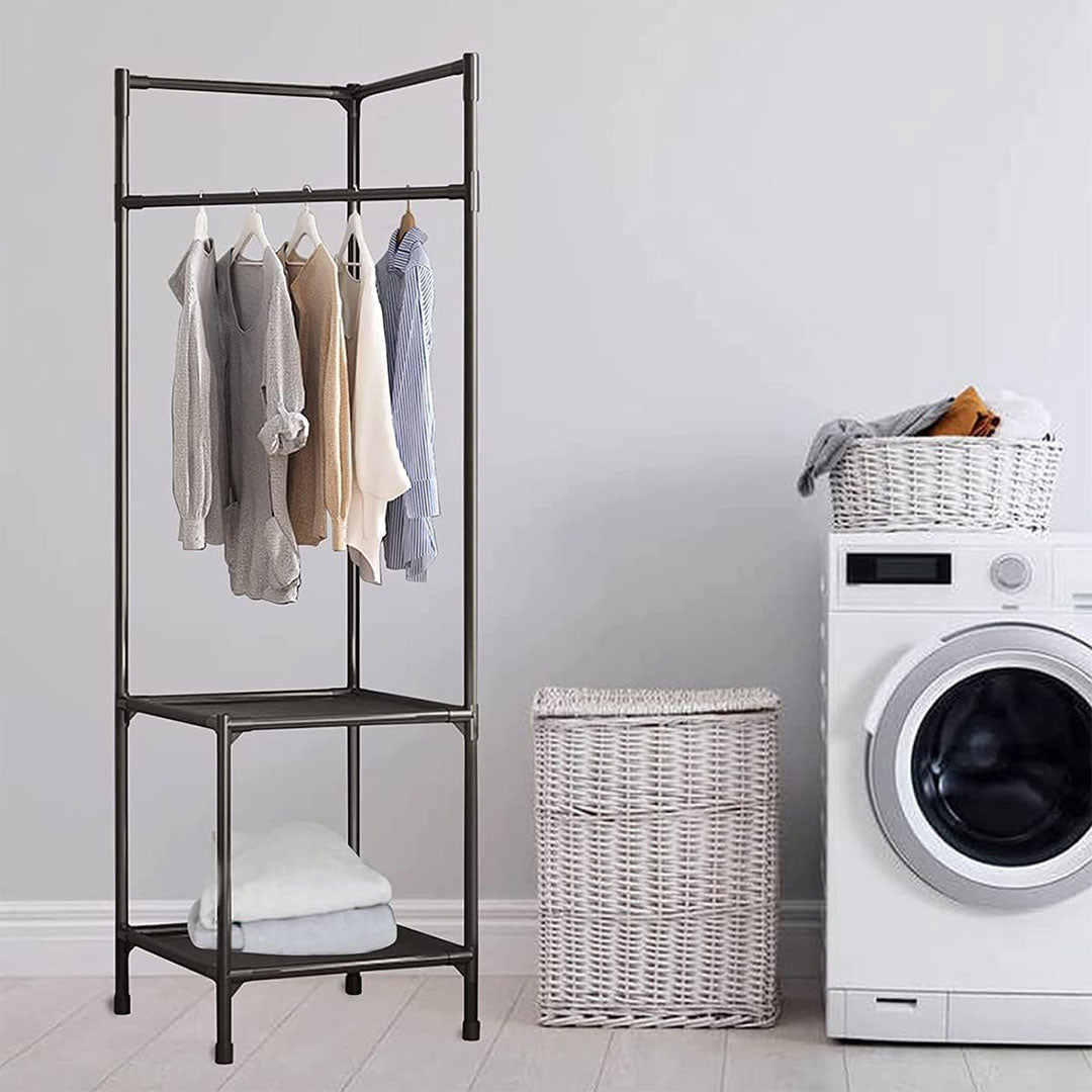 يحتوي على رفين وقضبان لتعليق الملابس.